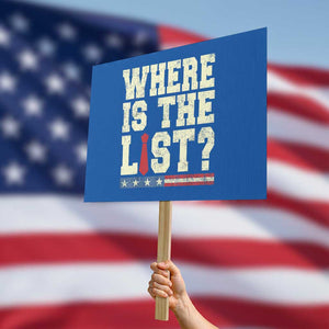 Where Is The List Protest Sign Funny Political Conspiracy Parody