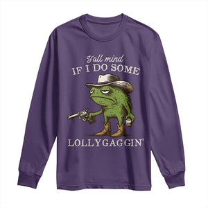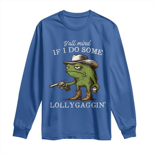 Y'all Mind If I Do Some Lollygaggin Long Sleeve Shirt Funny Cowboy Frog Western Animal Meme