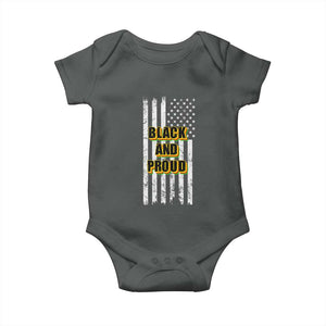 African American Baby Onesie Black And Proud US Flag BHM TS02