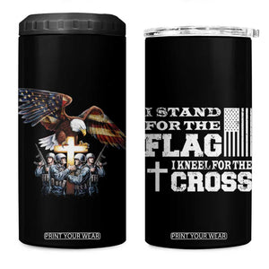 American Patriot Christian 4 in 1 Can Cooler Tumbler Stand For the Flag Kneel For the Cross Eagle