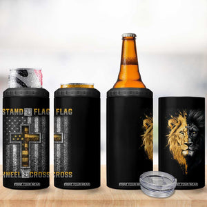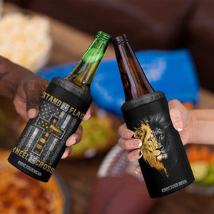 American Patriot Christian 4 in 1 Can Cooler Tumbler Stand For the Flag Kneel For the Cross Lion