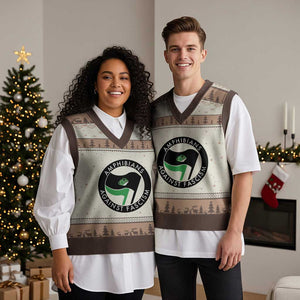 Amphibians Against Fascism V-Neck Knit Sweater Vest Anti-Fascist Frog Logo Portland Protest TS02