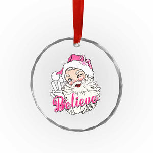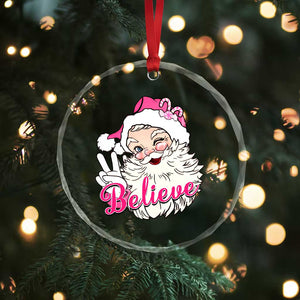 Believe Xmas Vintage Pink Santa Claus Crystal Glass Ornament