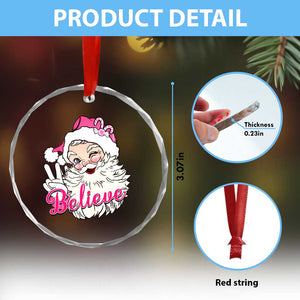 Placeholder Believe Xmas Vintage Pink Santa Claus Crystal Glass Ornament - PrintYourWear - Print Your Wear