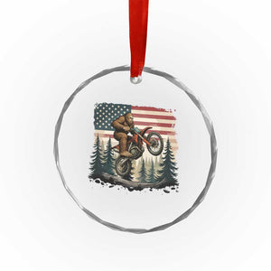 Bigfoot Dirt Bike Crystal Glass Ornament Patriotic Sasquatch American Flag