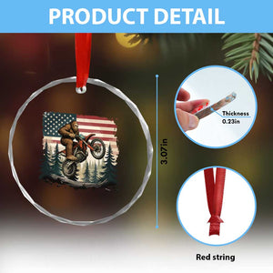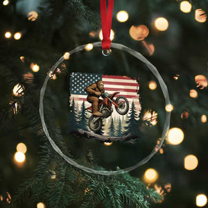 Bigfoot Dirt Bike Crystal Glass Ornament Patriotic Sasquatch American Flag TS14