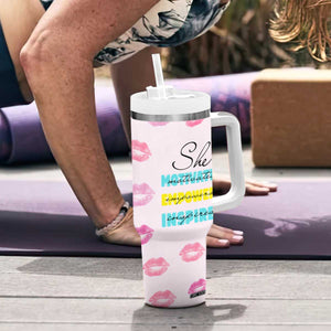 Placeholder Boss Gifts for Women Tumbler With Handle She Motivates Inspires Empowers Christmas Birthday Gift - PrintYourWear - Print Your Wear