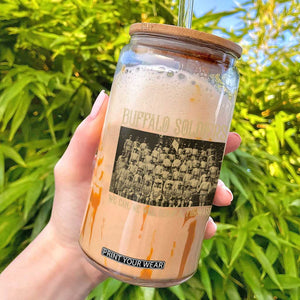 Stay Hydrated in Style with Our Buffalo Soldiers Clear Glass Can!