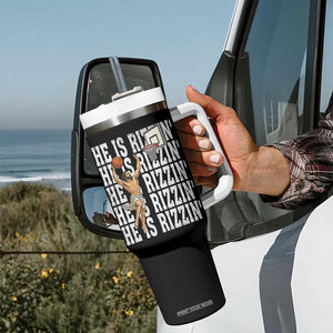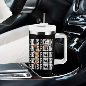 Christian Basketball Lover Tumbler With Handle He Is Rizzin Funny Gift