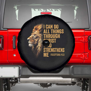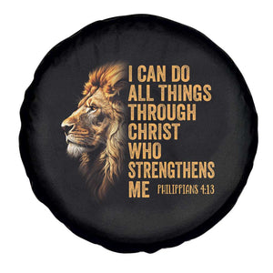 Christian Faith Spare Tire Cover Philippians 4:13 Religious Lion Strengthens TS02