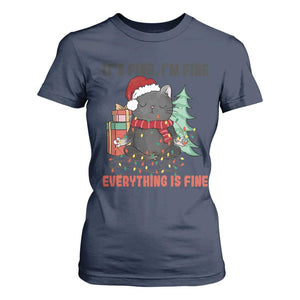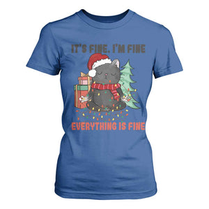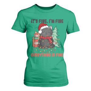 Christmas Black Cat T Shirt For Women It's Fine I'm Fine Everything Is Fine Xmas Light Funny