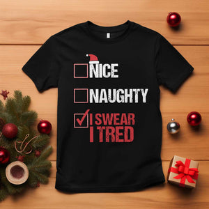 Christmas Santa T Shirt Nice Naughty I Swear I Tried Xmas List TS10