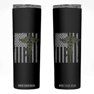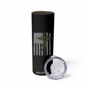 Combat Medic Soldier Skinny Tumbler Caduceus Vintage American Flag TS11