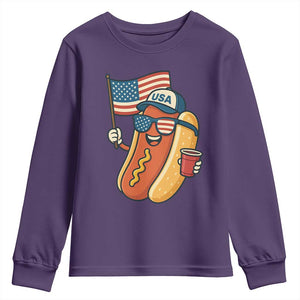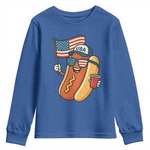 Cool Patriotic Hot Dog Youth Sweatshirt Funny 4th of July Cookout 4th of July American Flag TS02