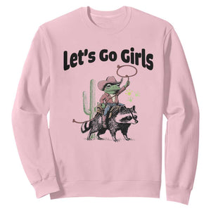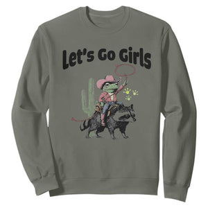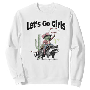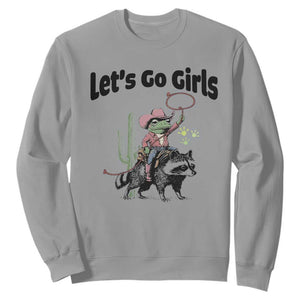 Cowboy Frog Riding Raccoon Sweatshirt Let's Go Girls
