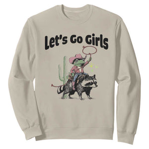 Placeholder Cowboy Frog Riding Raccoon Sweatshirt Let's Go Girls - PrintYourWear - Print Your Wear