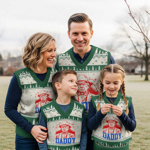 Elevate your everyday wardrobe with the Trump Cowboy Sleeveless V-Neck Knit Sweater Vest from Print Your Wear — the perfect balance of comfort, versatility, and timeless appeal. Whether worn over a T-shirt, styled under a blazer, or on its own, this vest adds dimension and polish to any outfit, in any season.