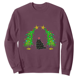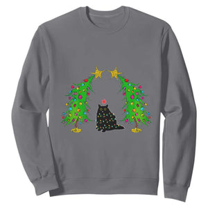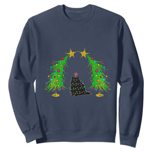 Cute Cat Christmas Sweatshirt Kitty Cat Lover Xmas Tree Lights