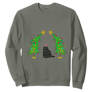 Placeholder Cute Cat Christmas Sweatshirt Kitty Cat Lover Xmas Tree Lights - PrintYourWear - Print Your Wear