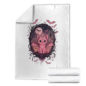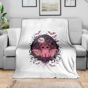 Cute Pastel Goth Bat Cat Throw Blanket Funny Gothic Halloween Art TS12