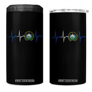 El Salvador 4 in 1 Can Cooler Tumbler Vintage Salvadoran Flag Heartbeat Independence Day