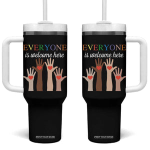 Everyone Is Welcome Here Tumbler With Handle Equality Fist Hands Hearts TS02