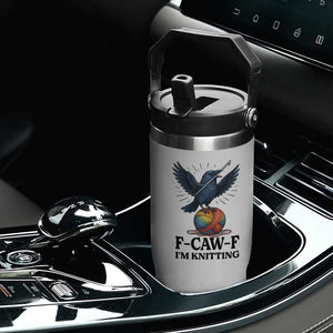 F Caw F I Am Knitting Flip Straw Tumbler Funny Raven Gift For Knitter