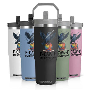 Placeholder F Caw F I Am Knitting Flip Straw Tumbler Funny Raven Gift For Knitter - PrintYourWear - Print Your Wear