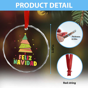Placeholder Feliz Navidad Colorful Xmas Tree Spanish Crystal Glass Ornament - PrintYourWear - Print Your Wear
