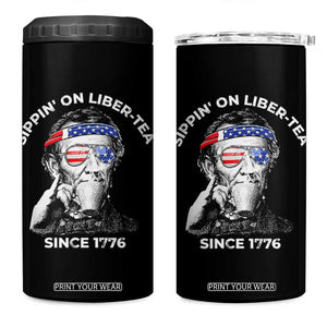 Funny 4th Of July 4 in 1 Can Cooler Tumbler Sippin On Liber Tea Liberty Abe Lincoln 1776 USA Flag