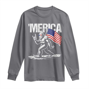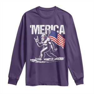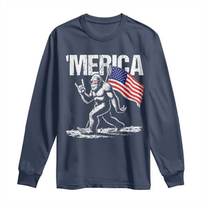Funny 4th Of July Bigfoot Merica Long Sleeve Shirt Patriotic Sasquatch American US Flag