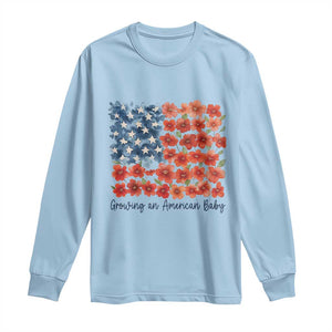 Funny 4th Of July Pregnancy Announcement Long Sleeve Shirt Growing An American Baby USA Flag Flowers TS11