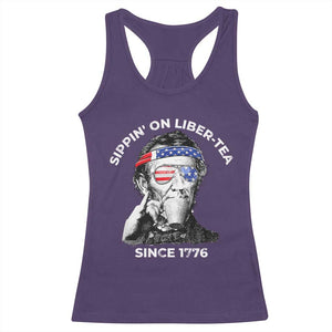 Funny 4th Of July Racerback Tank Top Sippin On Liber Tea Liberty Abe Lincoln 1776 USA Flag