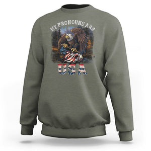 Funny 4th Of July Sweatshirt My Pronouns USA Eagle American