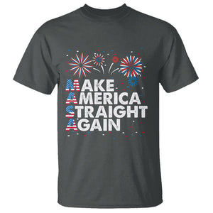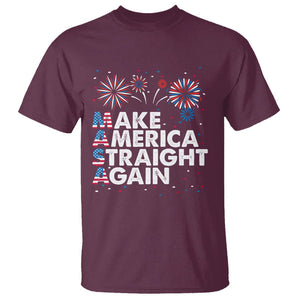 Funny 4th Of July T Shirt Make America Straight Again Fireworks US Flag USA Party