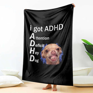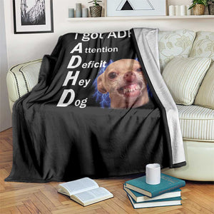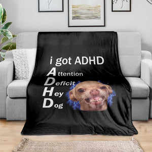 Funny ADHD Dog Meme Throw Blanket Attention Deficit Hey Dog Humor Lovers TS10
