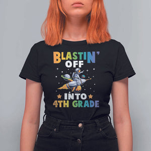 Funny Back To School Space T Shirt For Women Blastin' Off Into 4th Grade Astronaut Rocket