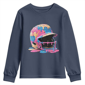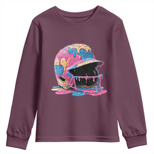 Funny Baseball Helmet Ice Cream Baseball Drip Youth Sweatshirt