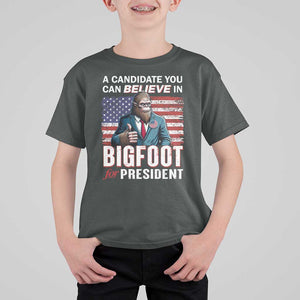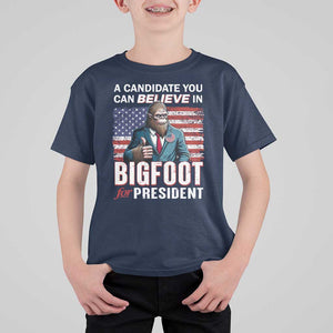 Funny Bigfoot For President T Shirt For Kid A Candidate You Can Believe In 2024 Sasquatch USA Flag