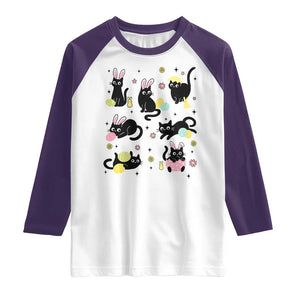 Funny Black Cat With Bunny Eggs Easter Day Raglan Shirt