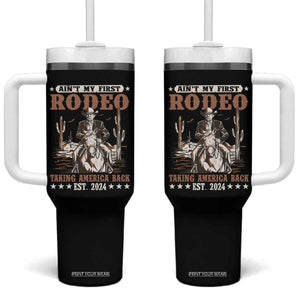 Funny Cowboy Trump Tumbler With Handle Ain't My First Rodeo Take America Back
