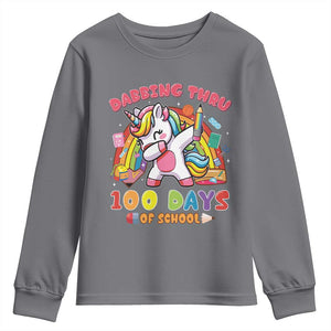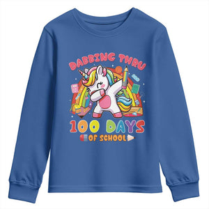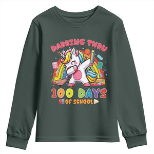 Funny Dabbing Thru 100 Days Of School Youth Sweatshirt Dabbing Unicorn Rainbow