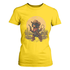 Elevate Your Wardrobe – Funny Dachshund Cowboy Women’s T-Shirt by Print Your Wear