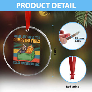 Funny Dumpster Fire Raccoon Crystal Glass Ornament When Life Gives You Dumpster Fires Roast Marshmallows Retro Vintage TS02