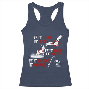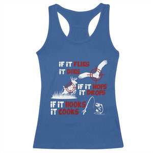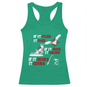 Funny Fishing Hunting Racerback Tank Top If It Flies It Dies If It Hops It Drops If It Hooks It Cooks