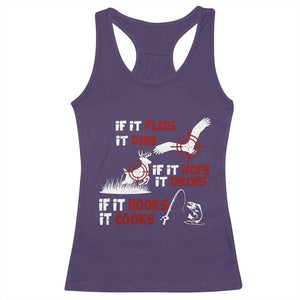 Placeholder Funny Fishing Hunting Racerback Tank Top If It Flies It Dies If It Hops It Drops If It Hooks It Cooks - PrintYourWear - Print Your Wear