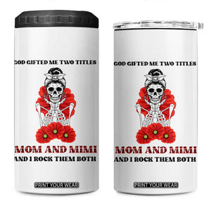 Funny Floral Skeleton Mom 4 in 1 Can Cooler Tumbler God Gifted Me Two Titles Mom And Mimi Messy Bun Mother's Day