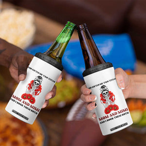 Funny Floral Skeleton Mom 4 in 1 Can Cooler Tumbler God Gifted Me Two Titles Mom And Mimi Messy Bun Mother's Day TS02