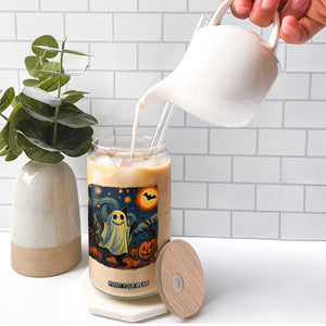 Funny Halloween Ghost Cat Glass Can Starry Night Van Gogh Cat Lover Gifts TS10