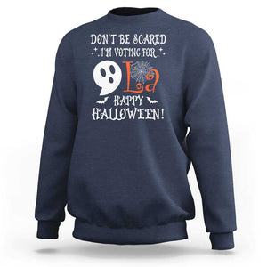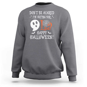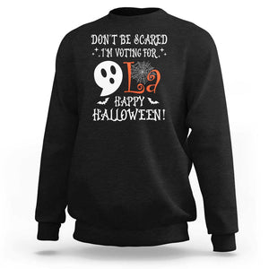 Funny Halloween Harris Sweatshirt Don't Be Scared I'm Voting For Kamala Comma Cute Ghost